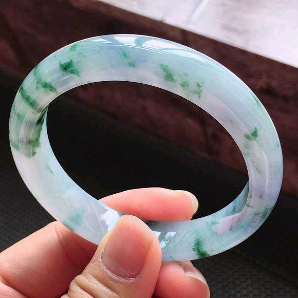 【果敢翡翠】w0819-12果敢翡翠 55.6冰飘花翡翠手镯玉手镯缅甸玉石手镯